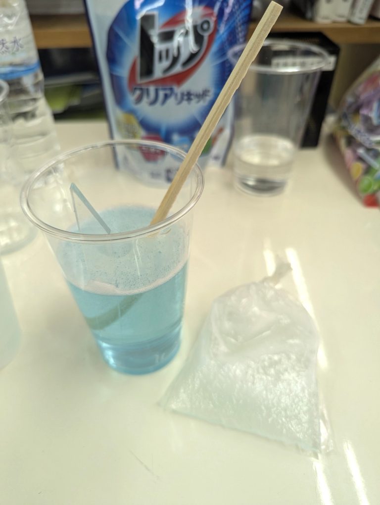 「じゃあ代わりに洗濯洗剤でやってみよう!」と、急きょ方針転換。